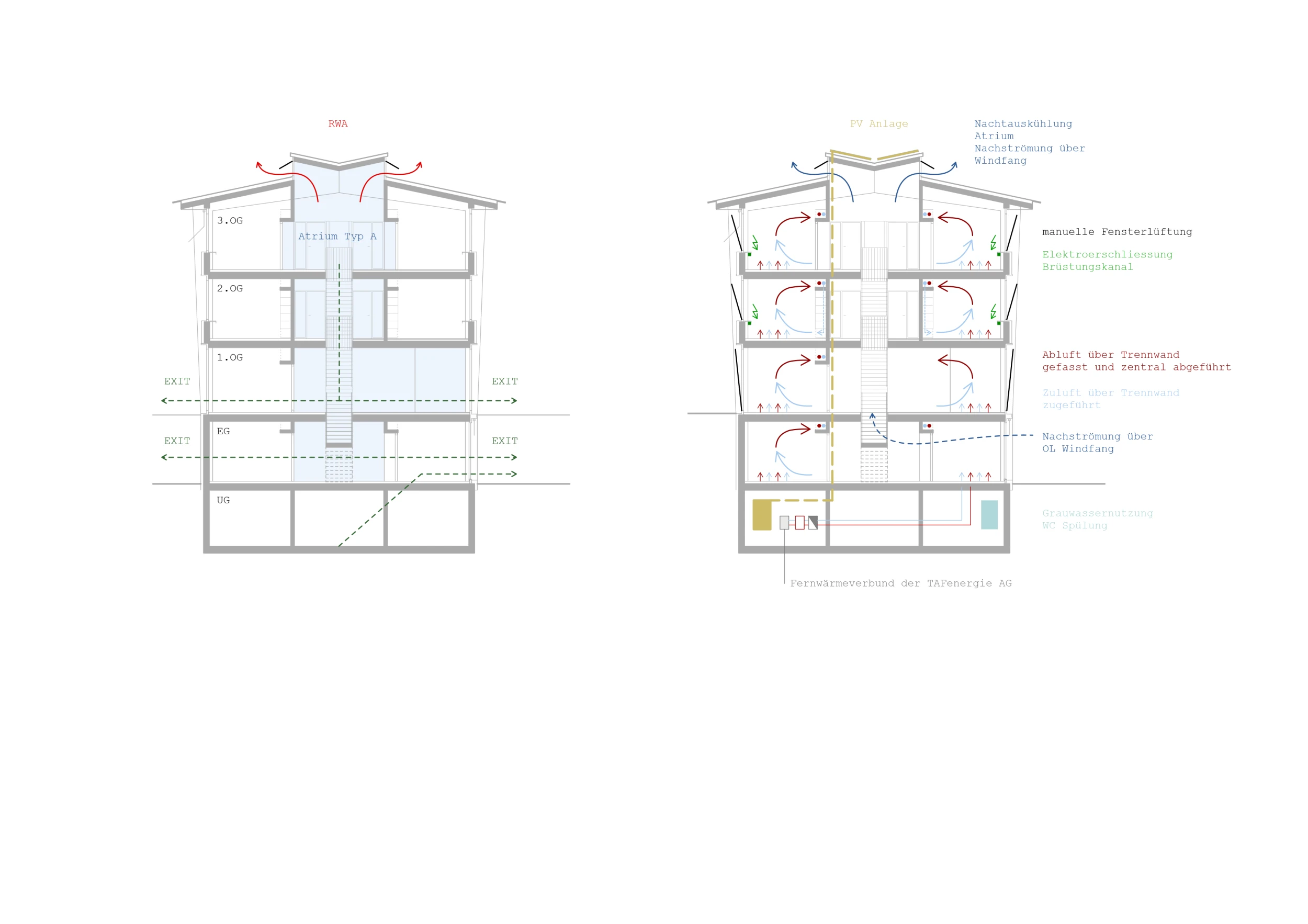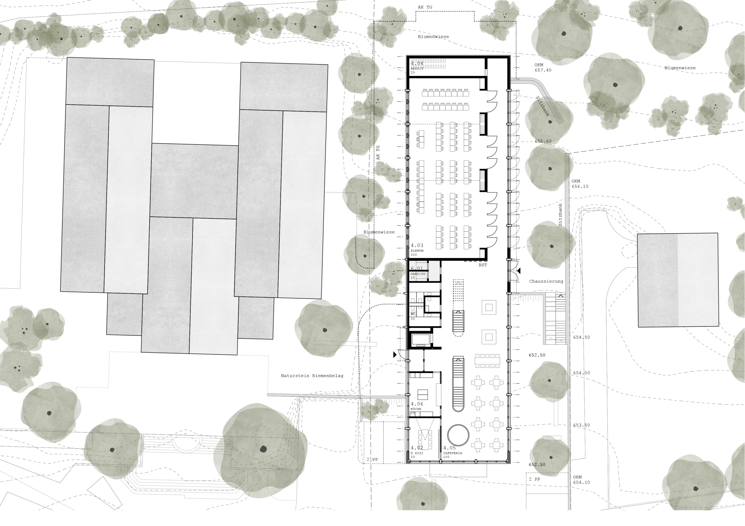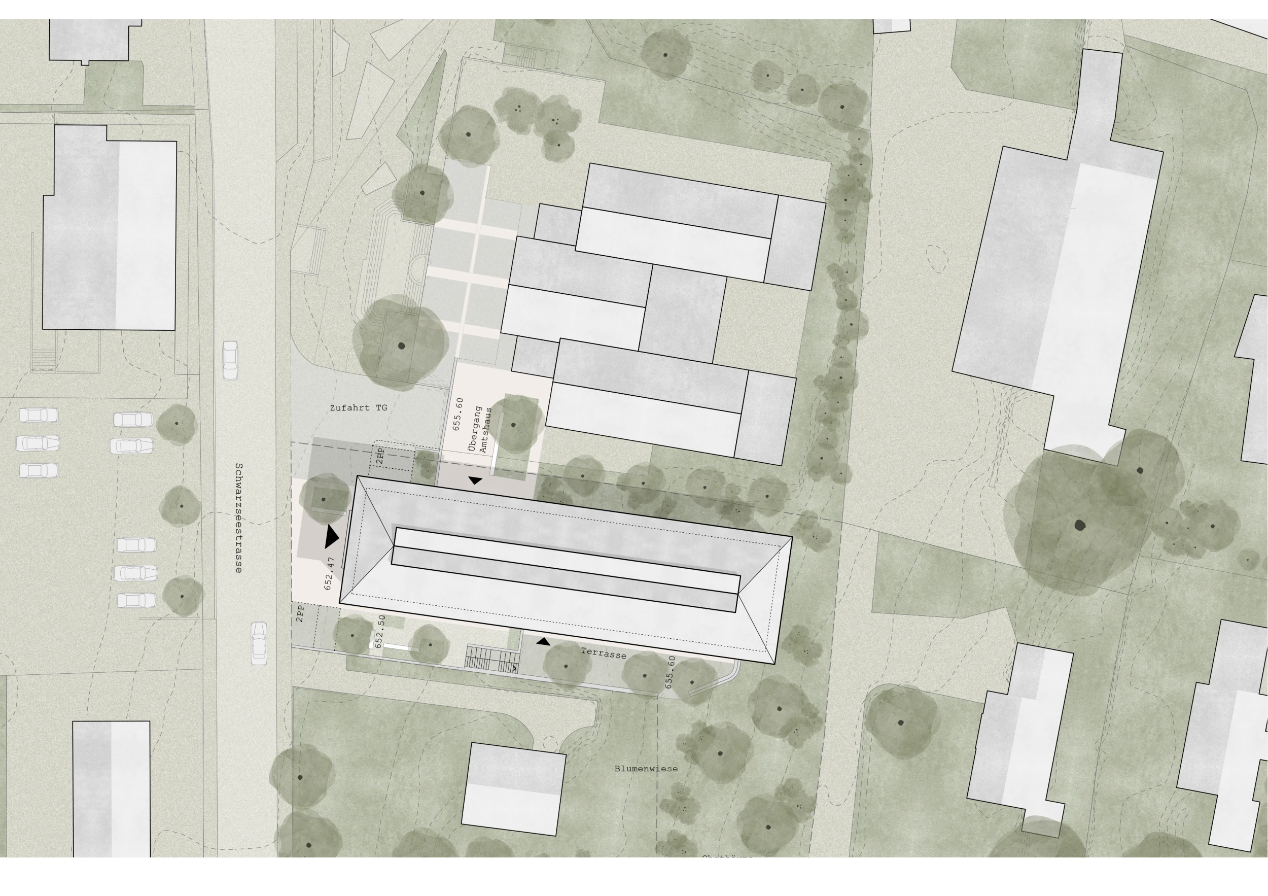 Das architektonische Konzept des neuen Gemeindehauses Tafers versteht sich als identitätsstiftende Antwort auf die Gemeindefusion von Tafers, Alterswil und St. Antoni. Der langgestreckte Holzbau bildet gemeinsam mit dem bestehenden Amtshaus ein neues Verwaltungszentrum und symbolisches Gemeinschaftshaus. In seiner klaren, horizontal gegliederten Form fügt er sich sensibel in die kleinteilige Dorfstruktur ein und vermittelt zwischen lokaler Bautradition und zeitgemässer Offenheit. Eine zentrale, lichtdurchflutete Erschliessungszone mit Kaskadentreppe verbindet alle Geschosse und schafft räumliche und visuelle Bezüge zwischen Verwaltung, Öffentlichkeit und politischem Leben. Die Holzbauweise mit hohem Vorfertigungsgrad, natürlichen Materialien und Minergie-Standard verkörpert Nachhaltigkeit, Flexibilität und Dauerhaftigkeit.